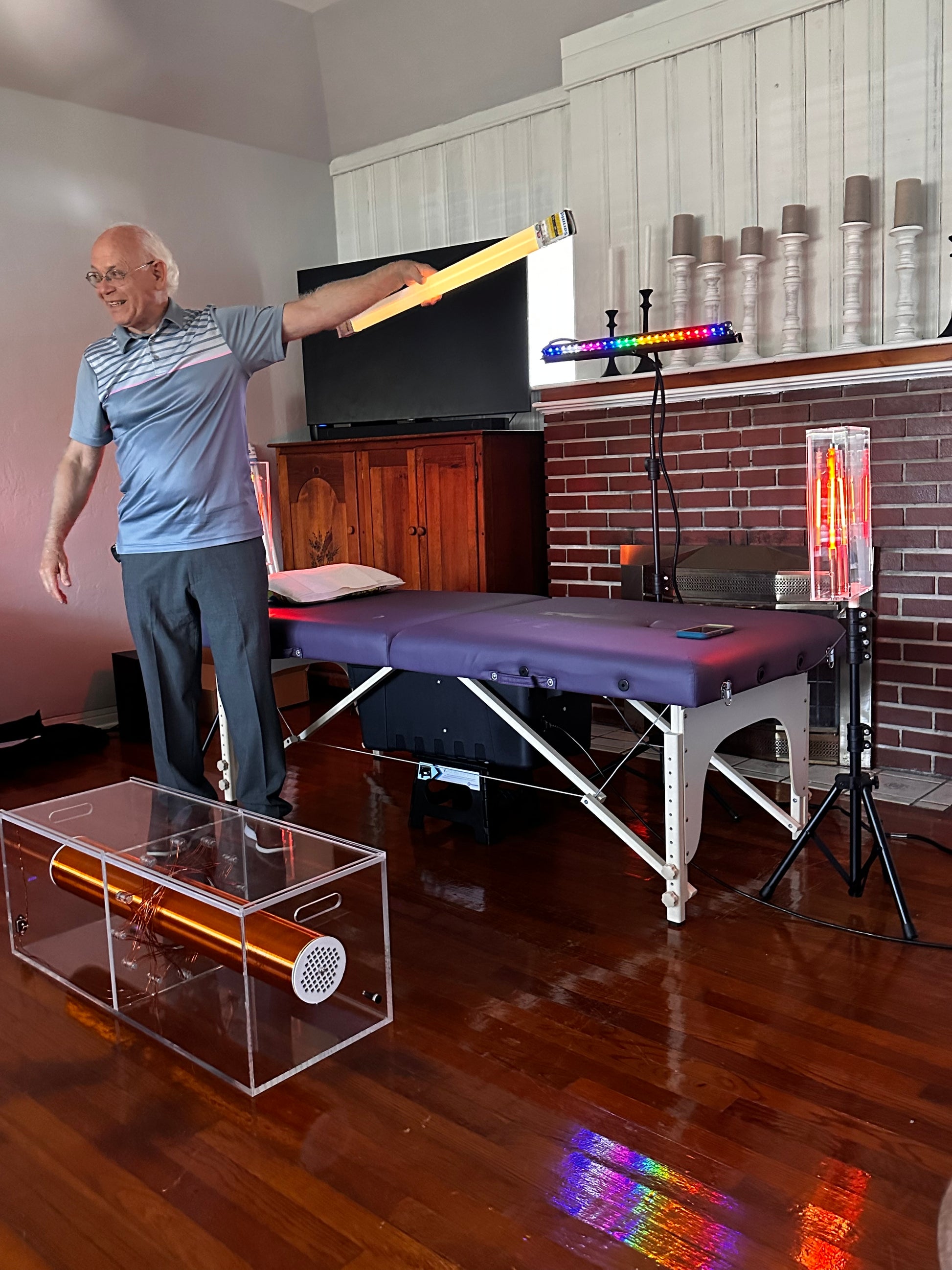 If you were to take all creation the universe the galaxy and shrink it down to the size of a massage table, you would have such a concentrated electric field that if you were to touch it you would actually get shocked because of the high intensity plasma scalar wave field. By placing your body in that high concentrated field, it automatically amplifies, intensifies, and multiplies the natural healing forces in your body to heal itself because your body is designed to restore itself. So, when the client says that table really healed me that is an incorrect statement, the only thing the Tesla table did is amplify your own natural healing forces for the body to heal itself.