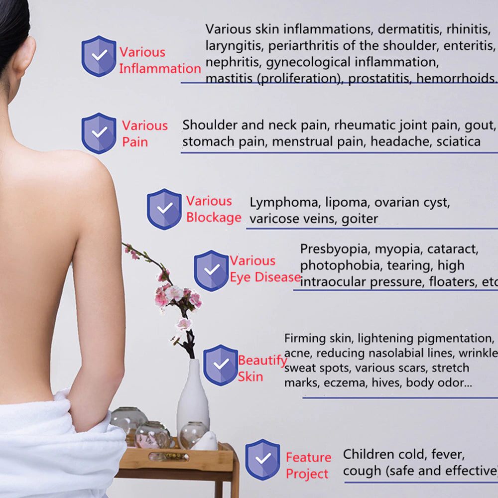 Eyes: Hold blower blue light over the eyes with a circular motion five minutes each.